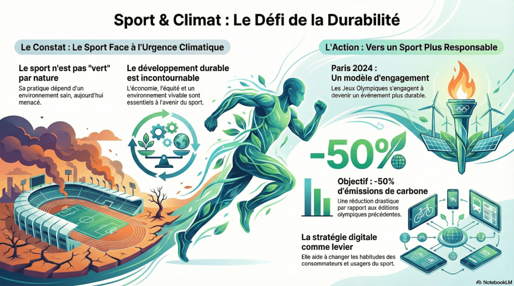 Bonne pioche pour les jeux olympiques Paris 2024 inscrit la 33e édition à une réduction de 50% d’émission de carbone par rapport aux éditions précédentes https://www.linkedin.com/posts/tony-estanguet_paris-2024-des-jeux-qui-r%C3%A9duiront-de-50-activity-6629016956009877504-TNO9. Véritable défi pour le sport dont l’utilité majeur sur le corps humain est l’oxygénation. De toute évidence la stratégie digitale participe grandement au développement durable et changement d’habitudes des consommateurs et usagers du sport : https://www.linkedin.com/posts/fc-barcelona_bar%C3%A7as-digital-strategy-creates-new-relationship-activity-6630153739225362432-R-j4