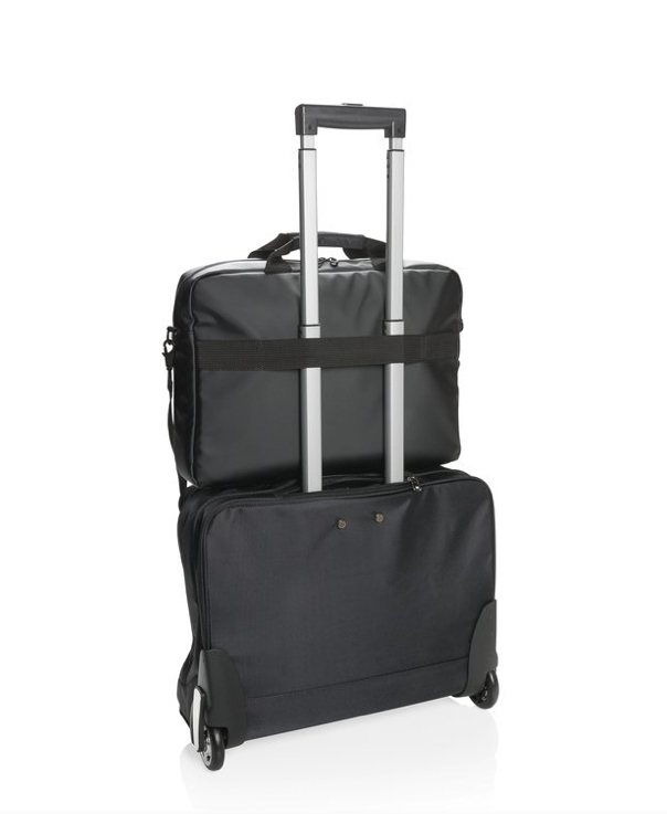 Les voyages d’affaires se passent toujours mieux avec les bons bagages. Cette valise professionnelle au design simple mais très fonctionnel facilite la préparation de vos affaires et votre voyage. Ajoutez votre logo pour afficher fièrement votre entreprise dans tous vos déplacements professionnels. Polyester 600D solide et résistant. Les dimensions (43 cm H x 36 cm l x 19 cm L) sont conformes aux dimensions autorisées en cabine. Compartiment principal pour vêtements et trousse de toilette pour deux jours. Poches intérieures et extérieures pour documents et accessoires. Compartiment pour ordinateur portable de 15,4 pouces.